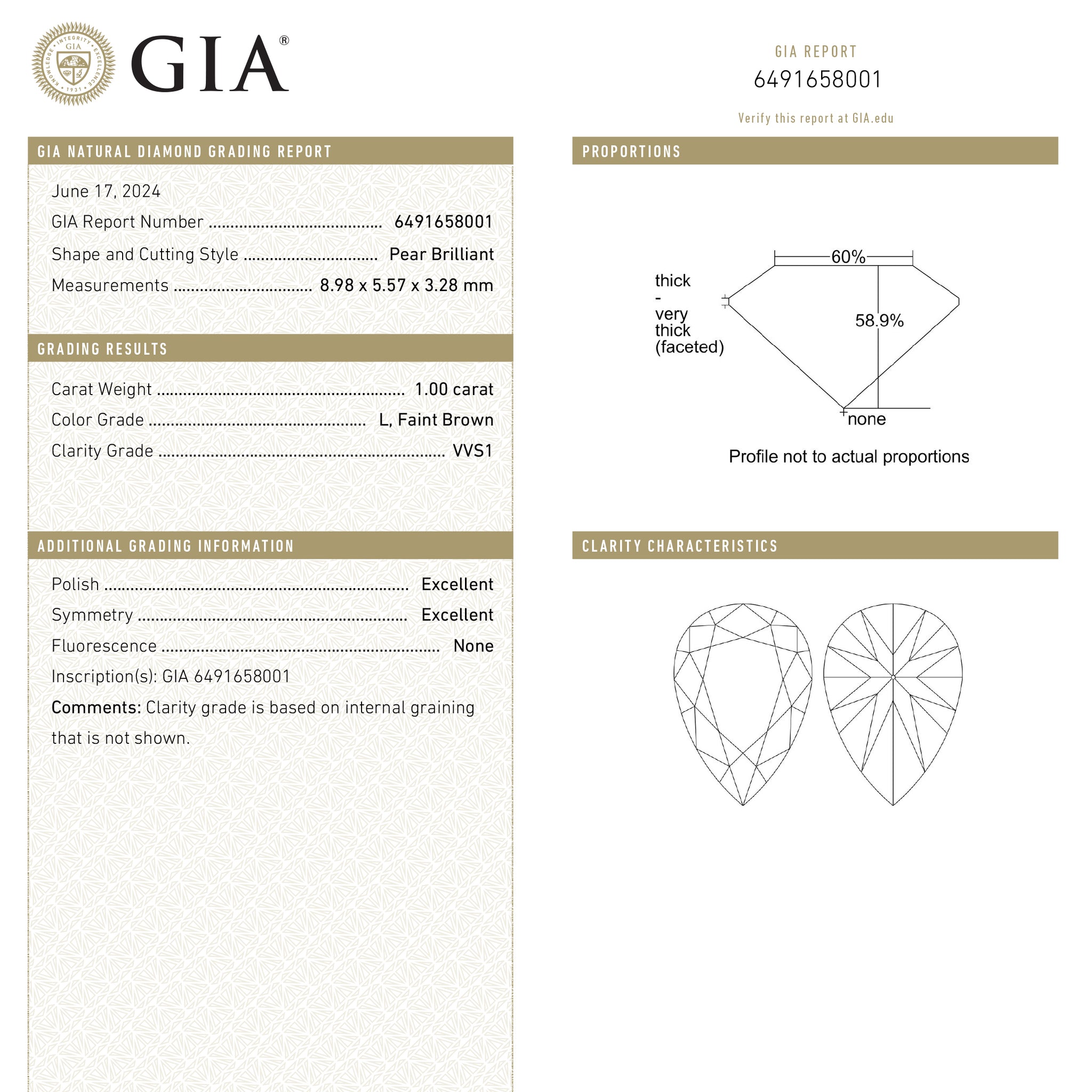 1.00ct 8.98x5.57x3.28mm GIA VVS1 L Pear Brilliant 27373-01