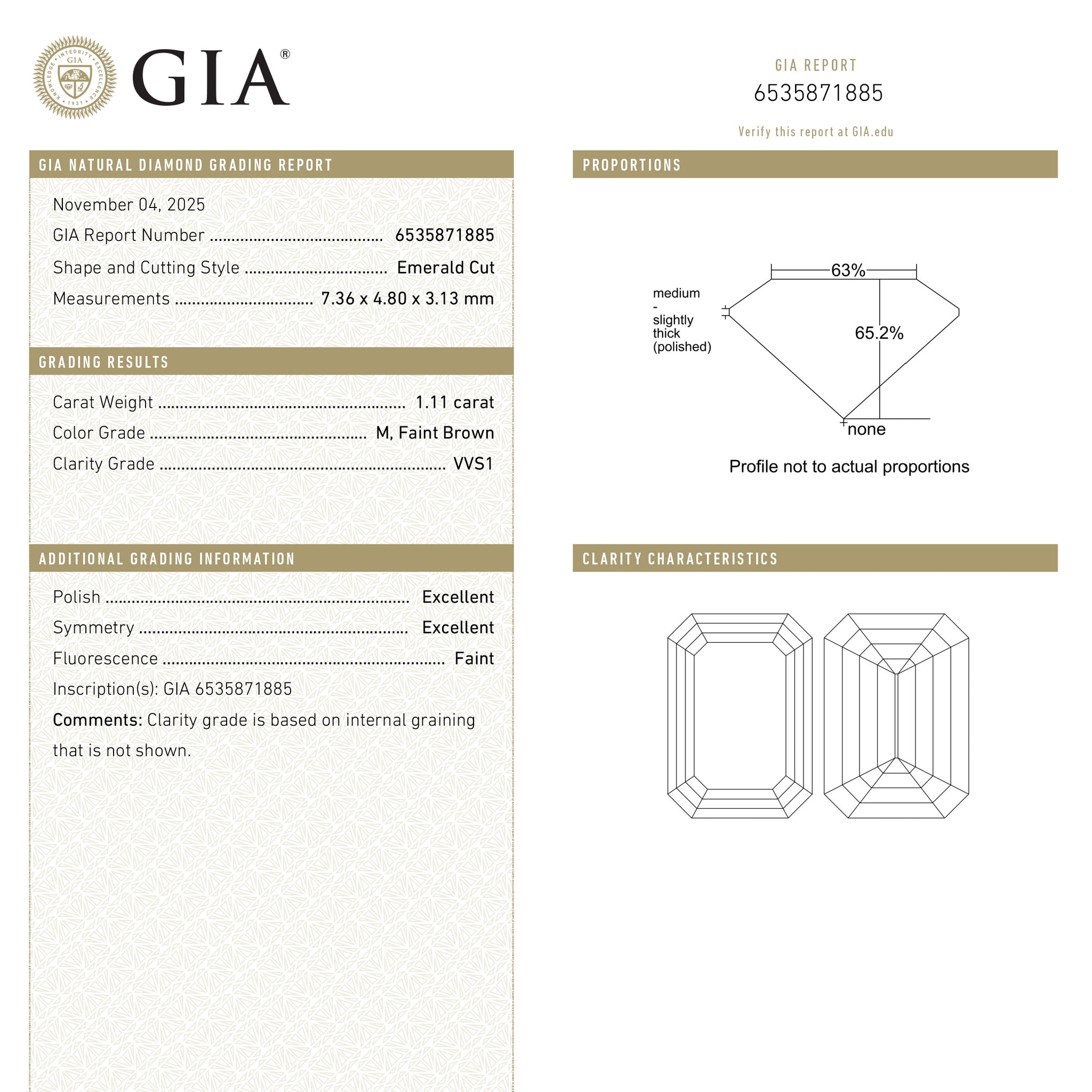 1.11ct 7.36x4.80x3.13mm GIA VVS1 M Cut Corner Rectangle Step Cut 27370-01