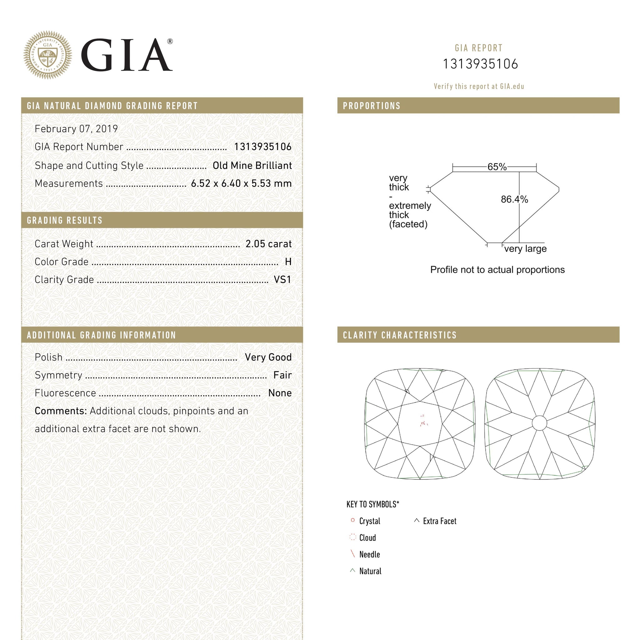 2.05ct 6.58x6.22x5.75mm GIA VS2 H Modern Antique Old Mine Cut 27129-01