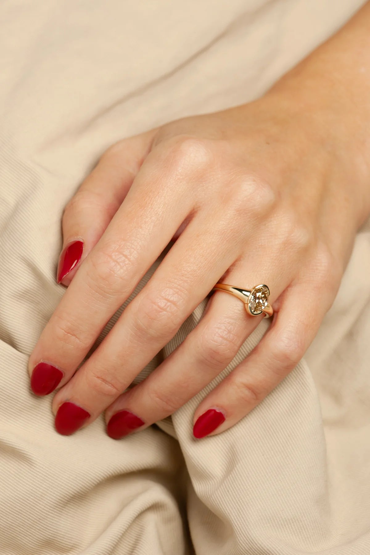 With a half bezel and tapering band, ATTIC’s Talia Ring is at once bold and classic. At its center sits a champagne Modern Antique Moval Cut diamond, celebrated for its unique shape and sparkle. Designed to be treasured for a lifetime, this ring is ideal as a one-of-a-kind engagement ring or for marking a special occasion.