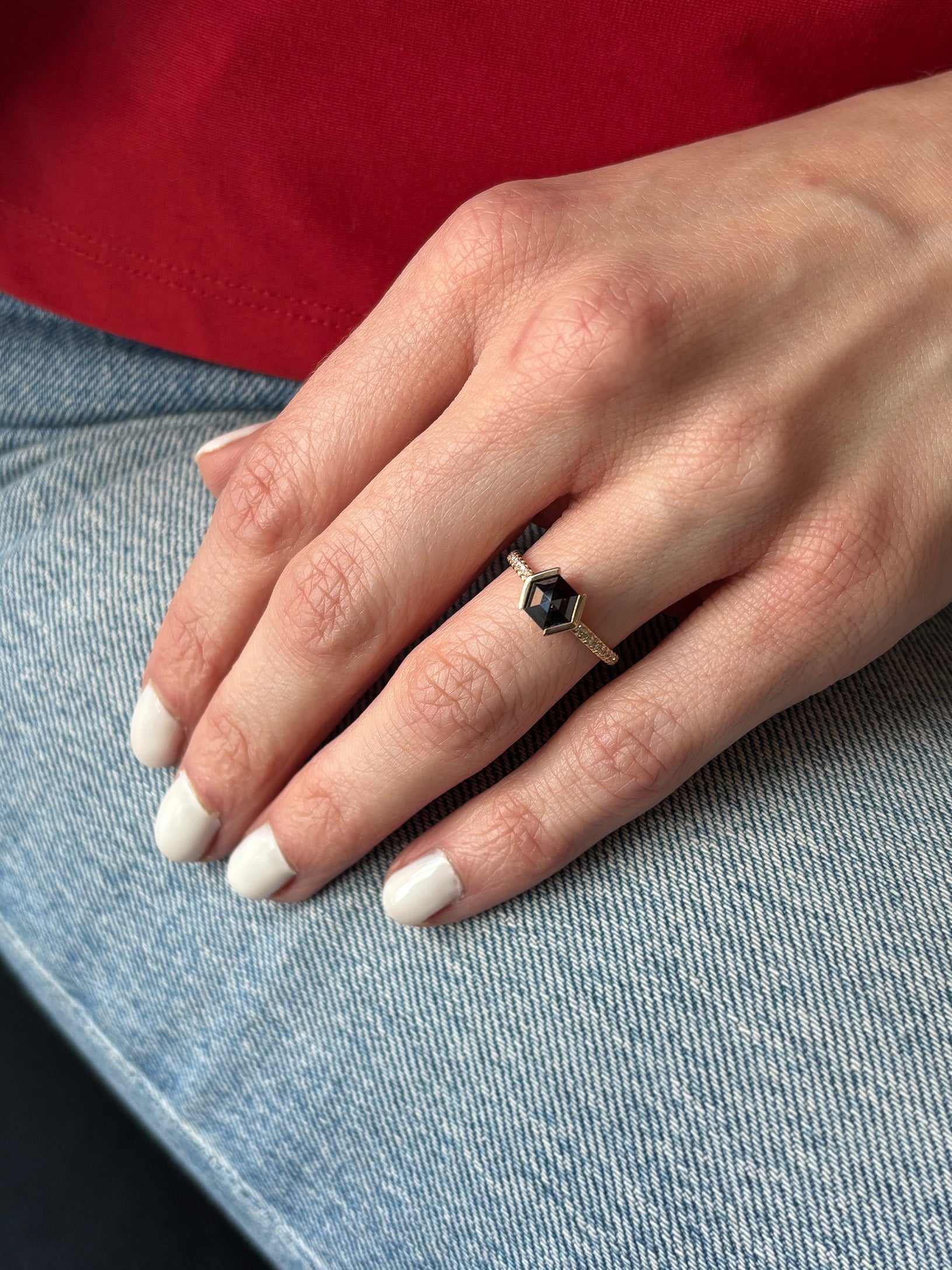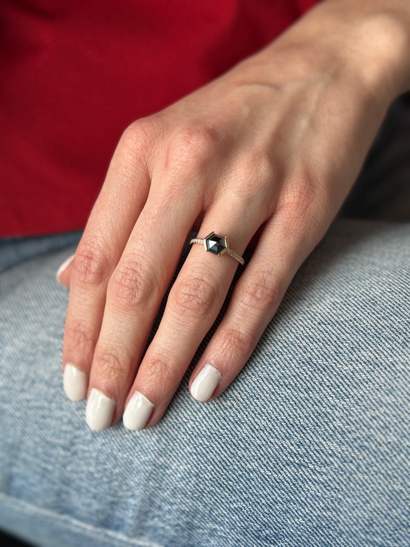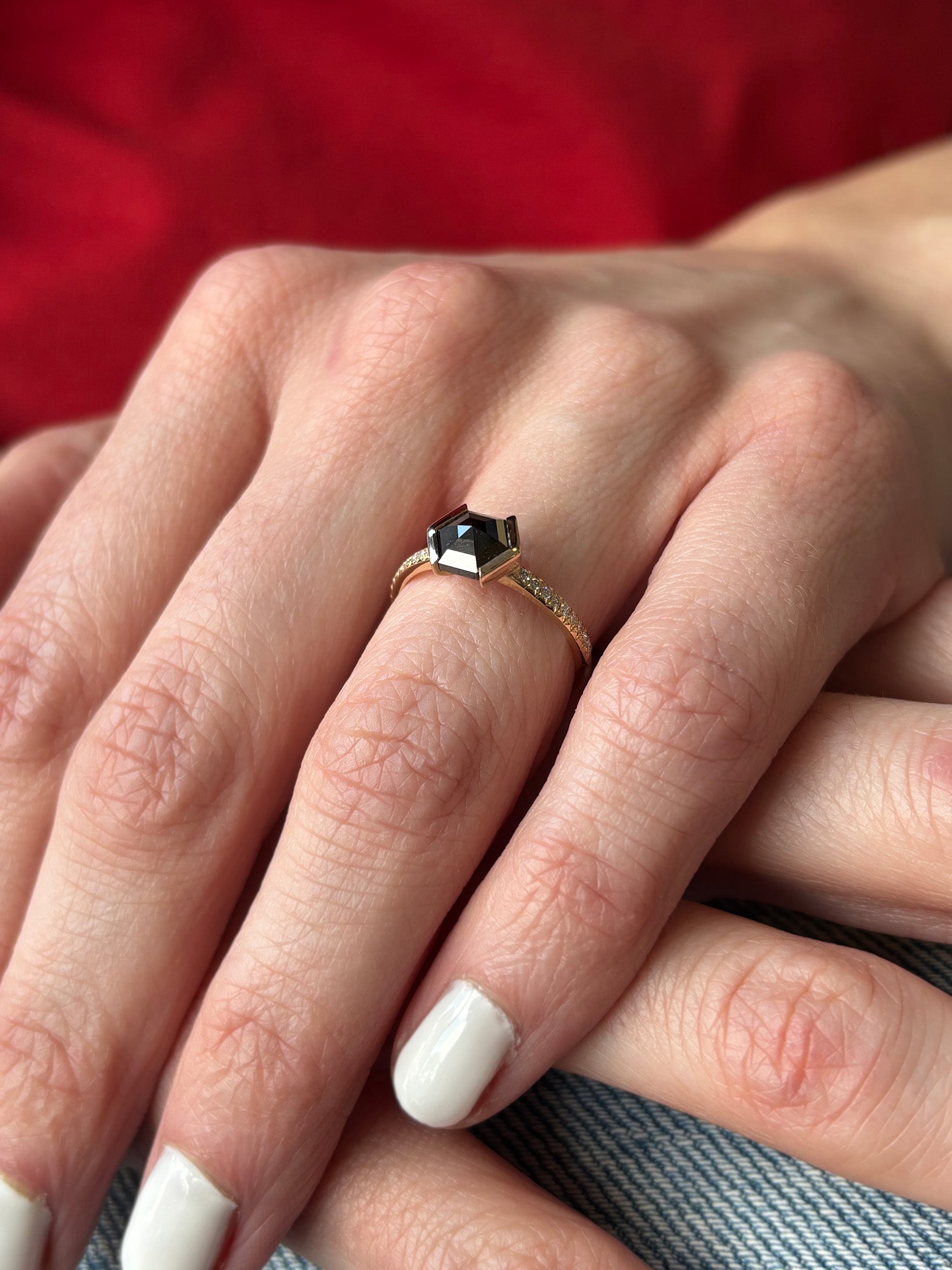 - Diamond, black, 1.07ct., 6.9mm x 6mm, hexagon rosecut, ethically sourced