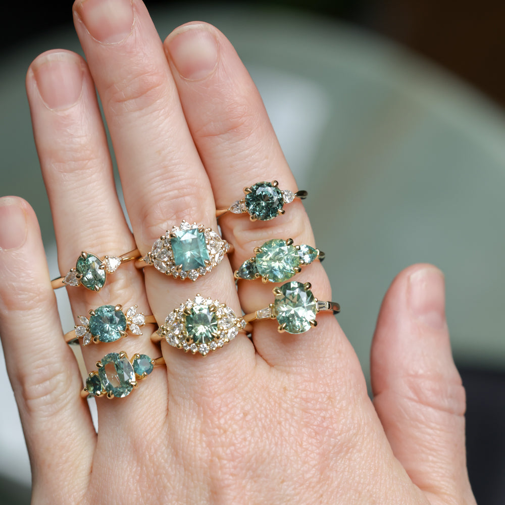 Anueva Jewelry | Sapphire and Diamond Floral Halo