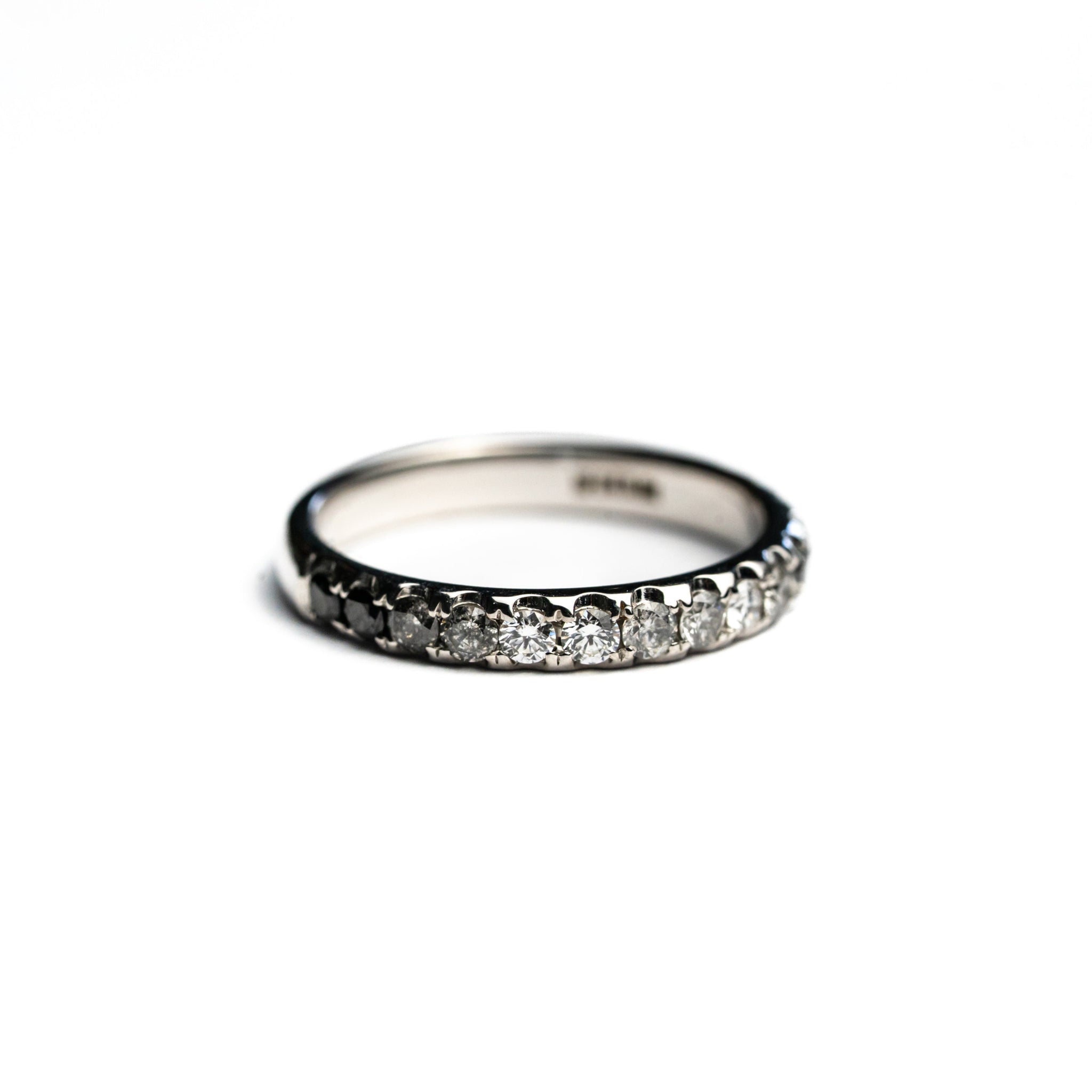 14K White Gold Salt and Pepper Ombre Eclipse Natural Diamond Band