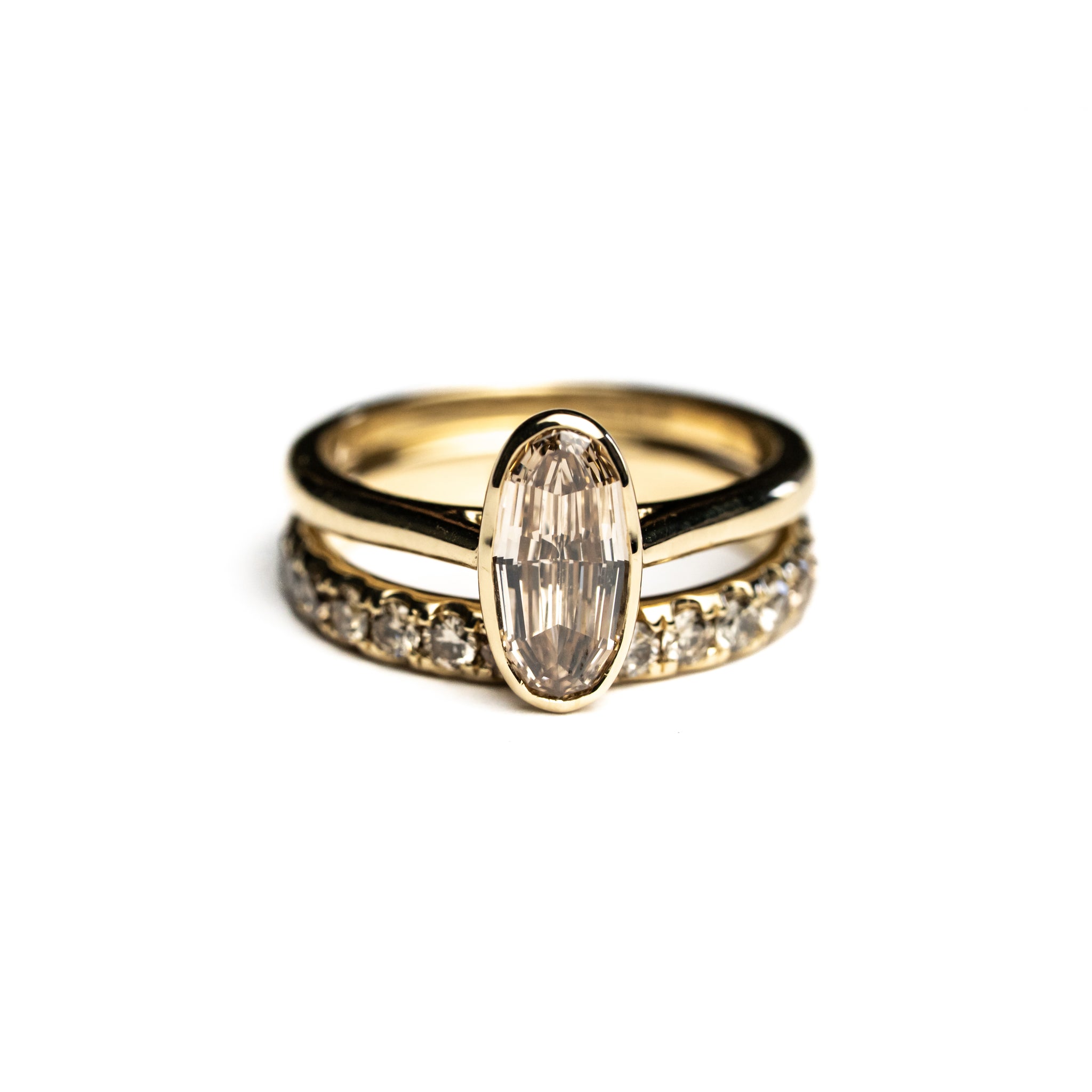14K Yellow Gold 1.05ct C5 Geo Oval Step Cut Diamond Mirage Ring
