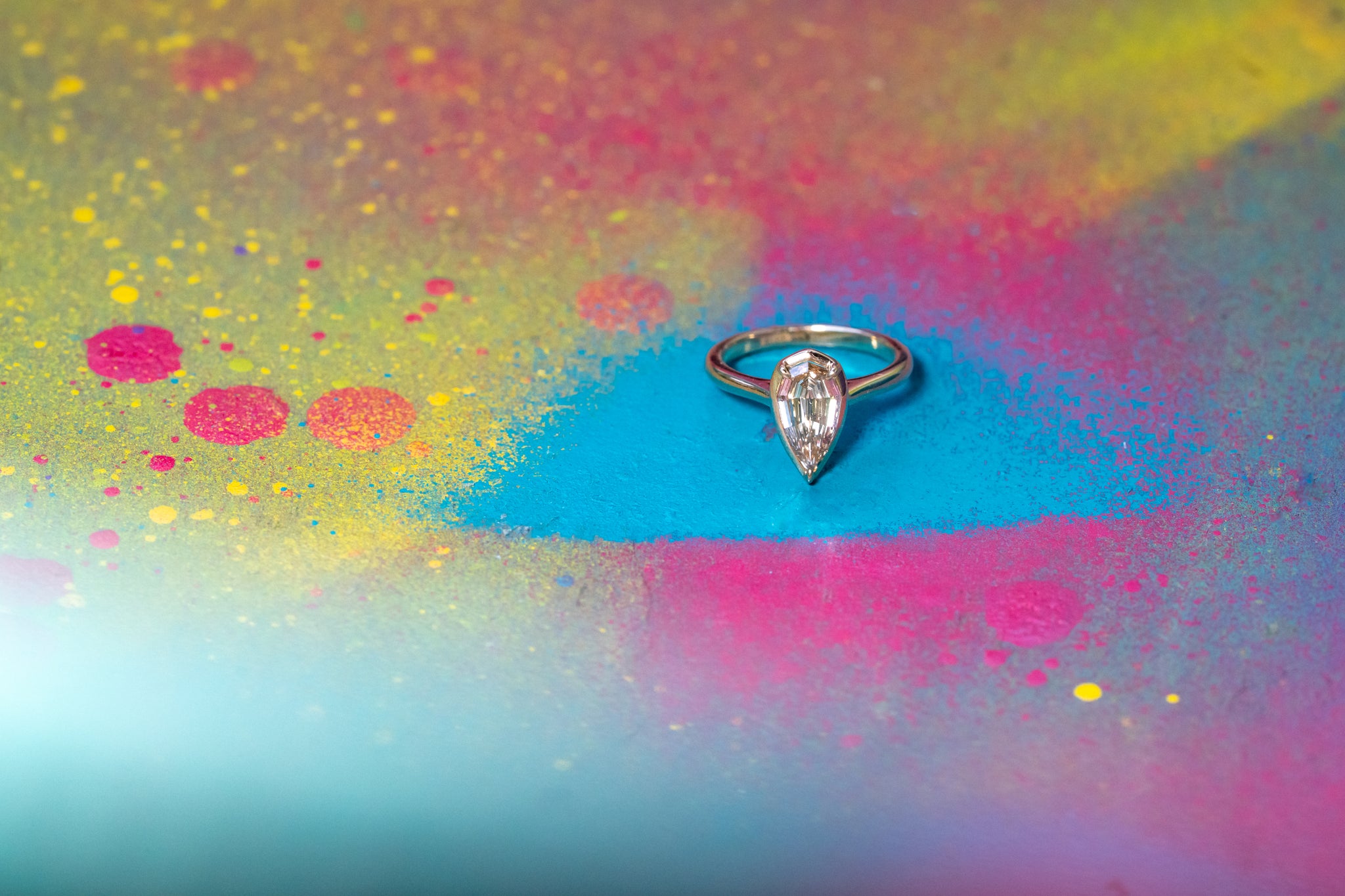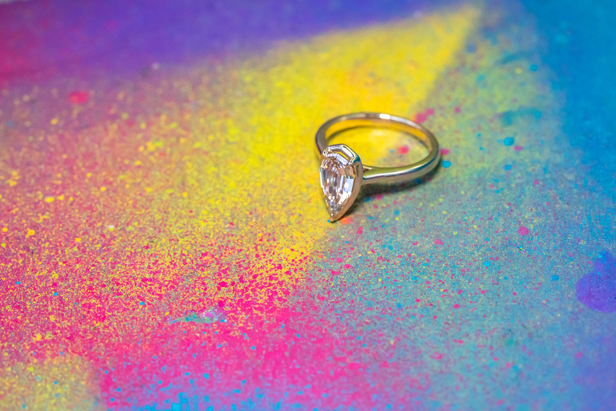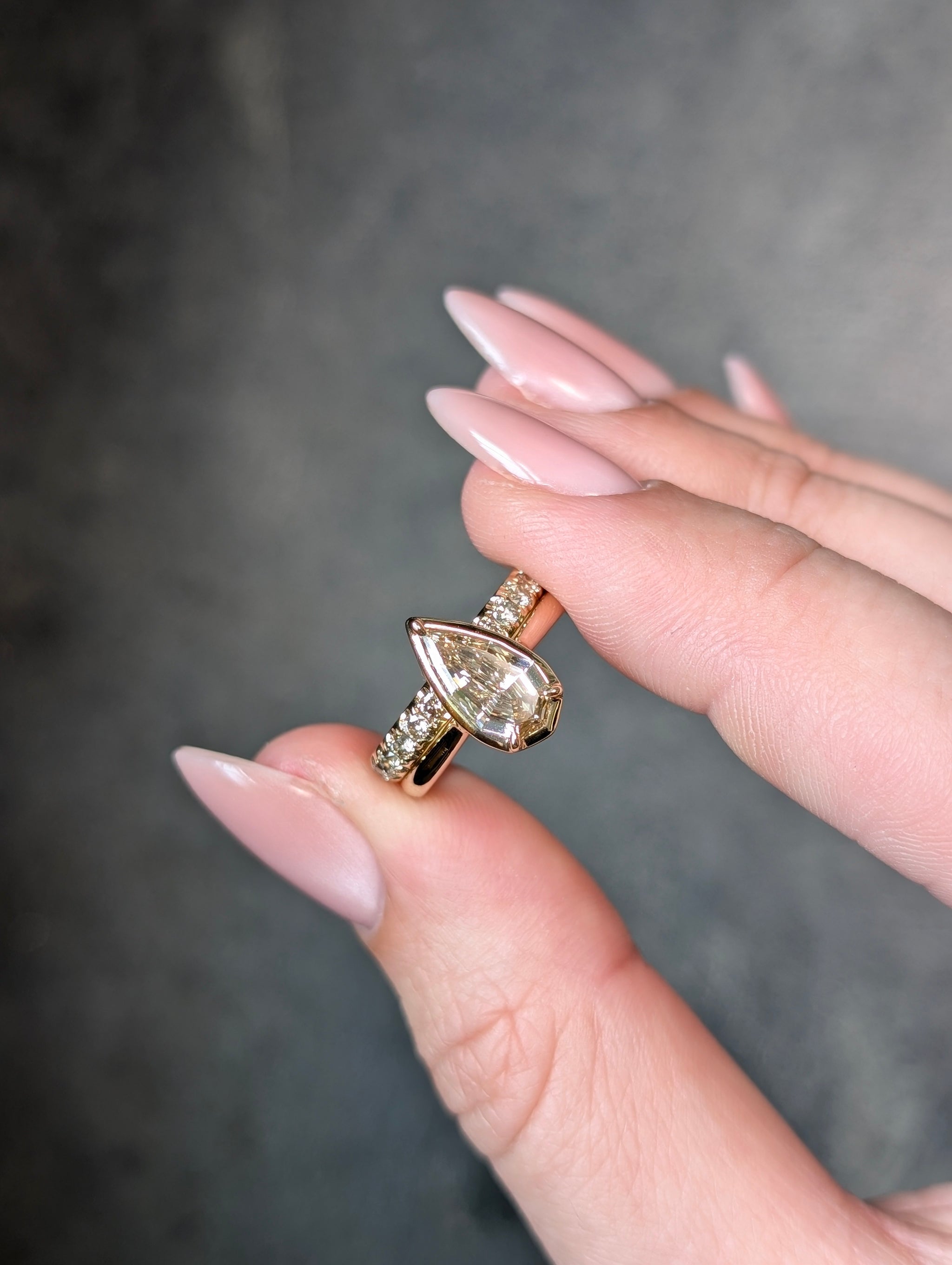 14K Yellow Gold 1.13ct C5 Geometric Natural Pear Step Cut Diamond Oasis Ring