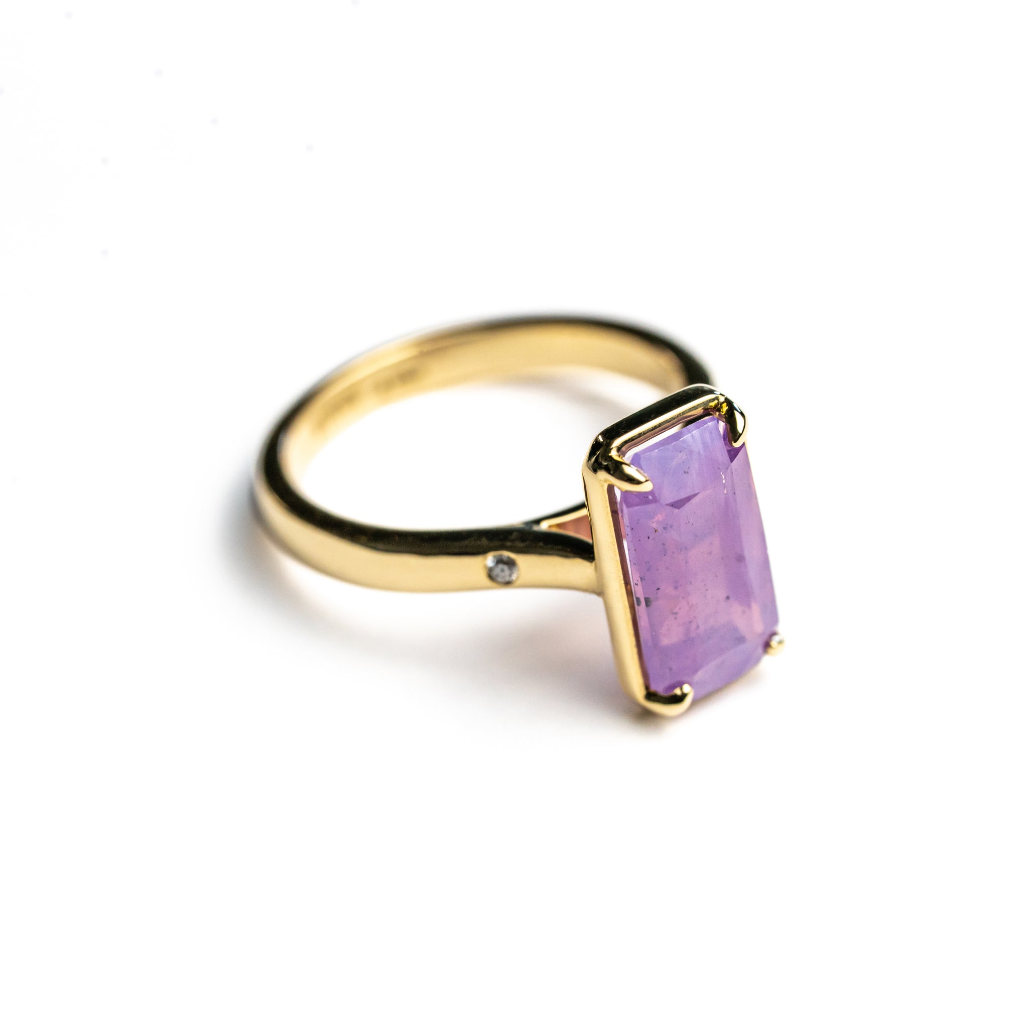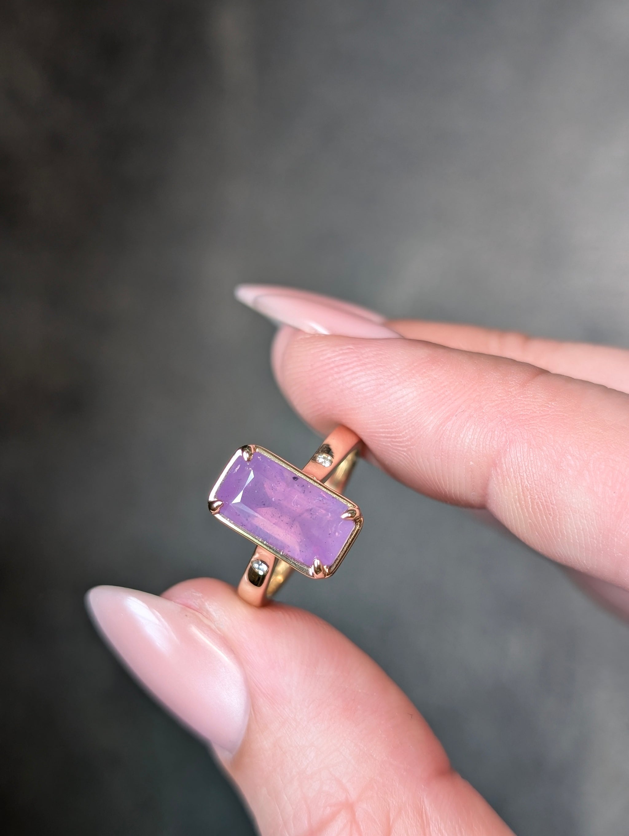 14K Yellow Gold 4.01ct Cut Corner Rectangle Brilliant Natural Purple Sapphire Tempest Ring