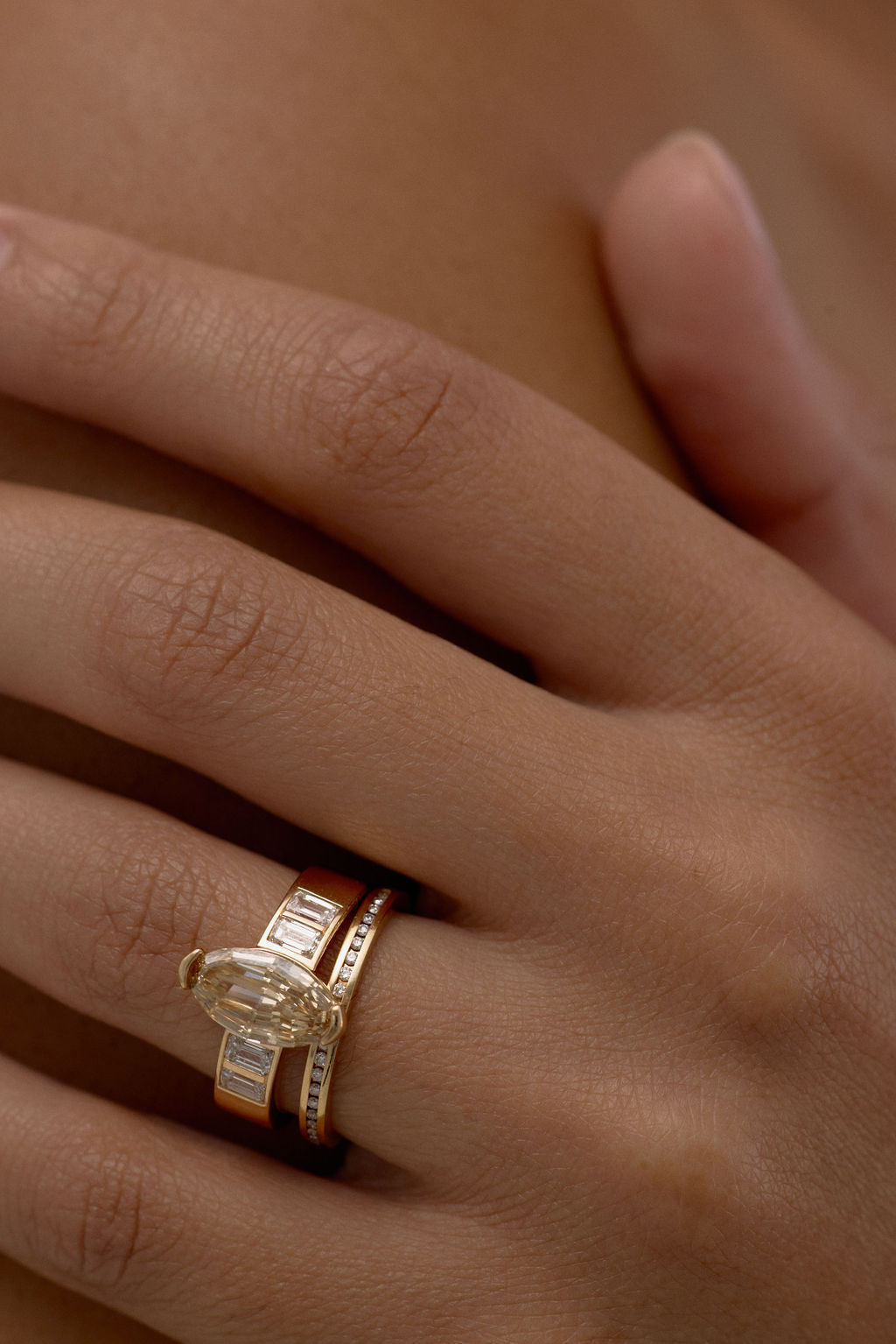 June Rings | Geo Cut Oval with Emerald Accents